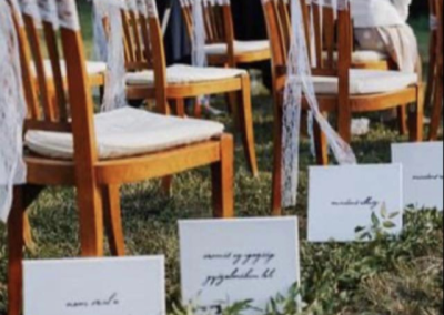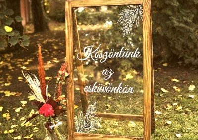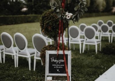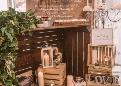 Képzeljétek el, ahogy a boldogságkapu alatt álltok: a fények lágyan körbefonják a pillanatot, a virágok illata betölti a levegőt, a színek és a részletek mind rólatok mesélnek. Az asztalokat, a székeket, a virágtartókat, a mécseseket és a lampionokat úgy álmodom meg, hogy amikor körbenéztek, minden szemetekhez közel álló érzést visszatükrözzön.